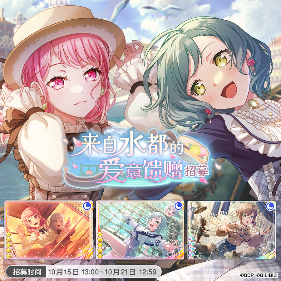 各位亲爱的BanG Dreamer: 游戏内现已开启「来自水都的爱意馈赠招募」,10月11日维护后新增招募成员将在本招募登场,且相比同稀有度其他成员出现概率提升!![]()